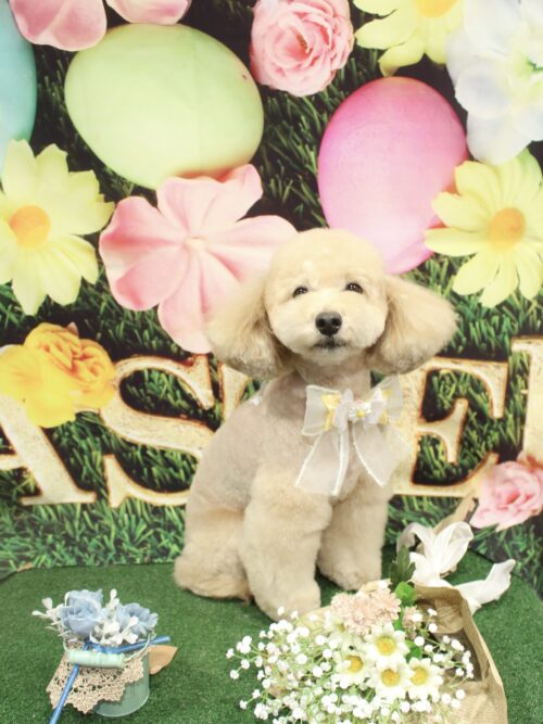 シャンプーカットコースのご利用で遊びにきてくれましたプードルのポポくんです