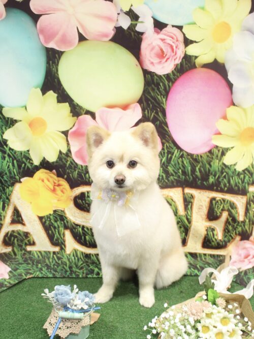 ホテル中のシャンプーカットコースのご利用で遊びに来てくれましたポメラニアンのハニくんです